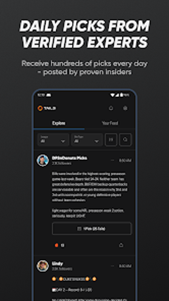 Belangrijke functies zijn onder andere een real-time expert picks feed, pushmeldingen voor nieuwe tips, en de mogelijkheid om eenvoudig picks te kopiëren naar een sportsbook of fantasy-app. De app is ontworpen om gebruikers te helpen sneller en efficiënter weddenschappen te plaatsen, terwijl het ook een gemeenschap creëert voor sportwedders die op zoek zijn naar betrouwbare informatie.